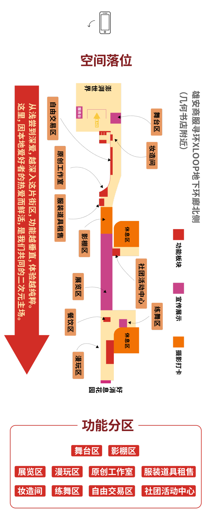 节点重磅庆典:街区将紧扣年度重要节点,逐步打造系列品牌活动,如万圣节COS派对、情人节“次元告白季”,更将在黄金周等节假日重磅推出品牌漫展,引爆区域关注。